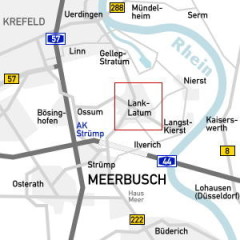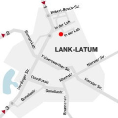 Fahren Sie über die Bismarckstr. bis Lank-Latum. An der ersten Ampel biegen Sie links ab auf die Uerdinger Str. Fahren Sie durch den Kreisverkehr. Biegen Sie die nächste Straße rechts ab. Sie sind jetzt 'In der Loh'.